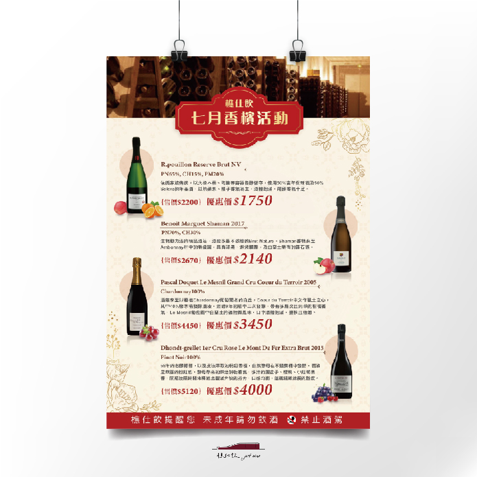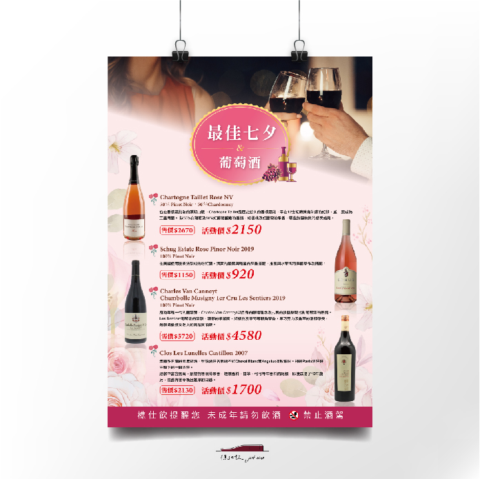 樵仕飲-品酒海報在浪漫七夕,舉杯「樵仕飲葡萄酒」,讓愛情在酒香中醞釀;挑選一款「最佳七夕葡萄酒」,與摯愛共享微醺時光,為心動時刻增添層次風味。而在「國際黑皮諾日」這天,開瓶細緻優雅的黑皮諾,向世界最迷人的紅酒品種致敬。無論是節日慶祝或日常小酌,樵仕的每一瓶葡萄酒,都是獻給生活與愛的詩。合作專案#DM設計設計師FanFan客戶樵仕飲股份有限公司分享 Facebook Instagram Threads Line